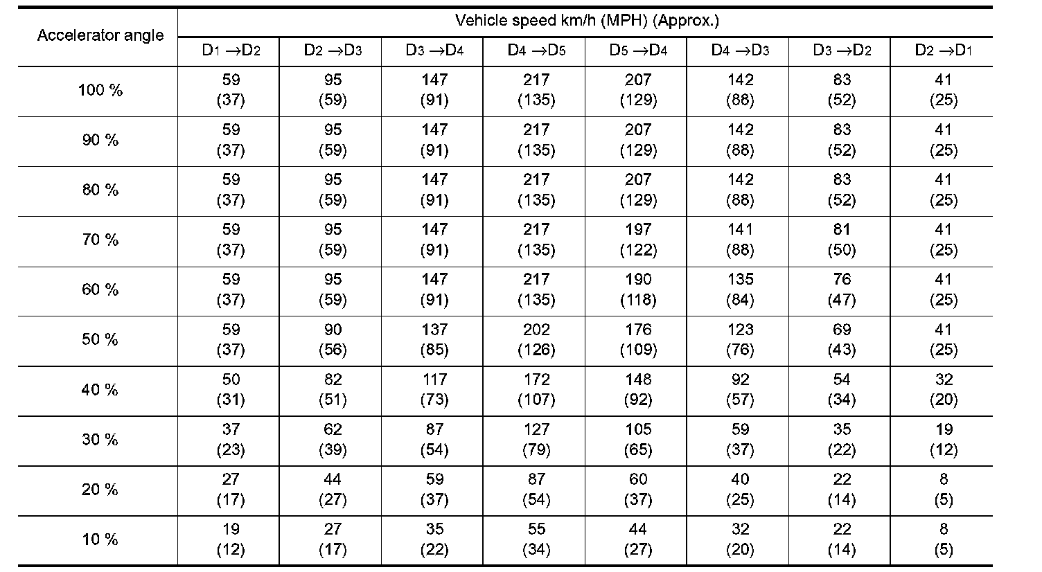^ Lock-up vehicle speed indicates the speed in D position.
