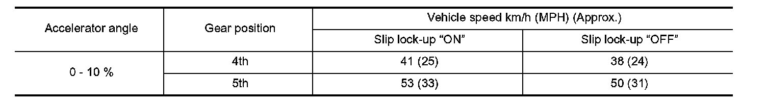 ^ Slip lock-up vehicle speed indicates the speed in D position.