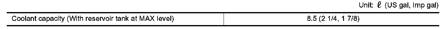 Coolant capacity (With reservoir tank at MAX level) 8.5 (2 1/4, 1 7/8)