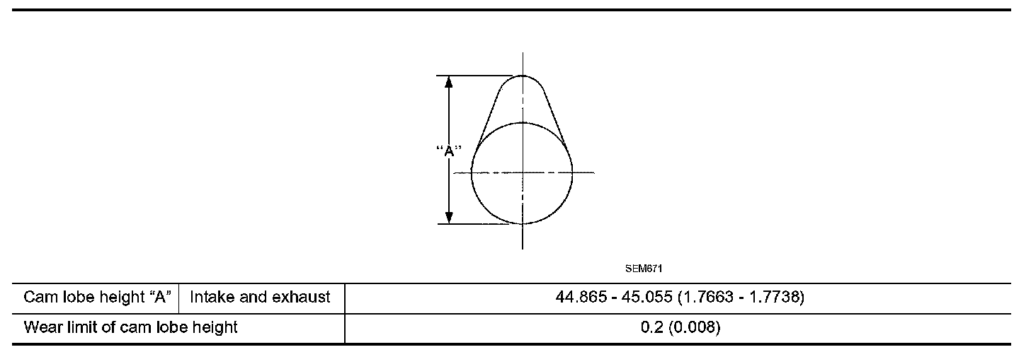 Wear limit of cam lobe height 0.2 (0.008)