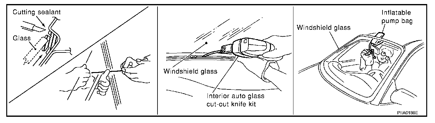 - Use a genuine NISSAN Urethane Adhesive Kit or equivalent and follow the instructions furnished with it.