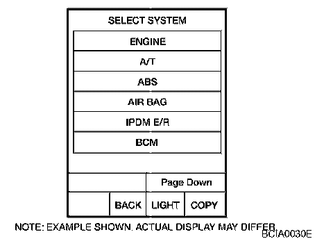 5. Touch ABS. If ABS is not indicated, go to GI-38, CONSULT-II Data Link Connector (DLC) Circuit. CONSULT-II Checking System