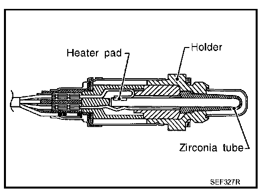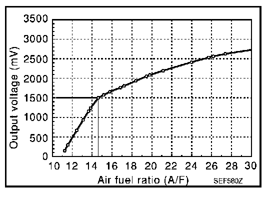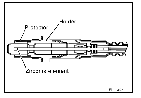 This sensor is made of ceramic zirconia. The zirconia generates voltage from approximately 1 V in richer conditions to 0 V in leaner conditions.