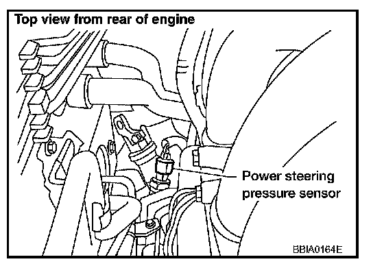 Power steering pressure (PSP) sensor is installed to the power steering high-pressure tube and detects a power steering load. This sensor is a potentiometer which transforms the power steering load into output voltage, and emits the voltage signal to the ECM. The ECM controls the electric throttle control actuator and adjusts the throttle valve opening angle to increase the engine speed and adjusts the idle speed for the increased load.