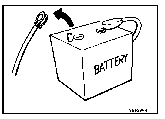 - Before removing parts, turn ignition switch OFF and then disconnect battery ground cable.