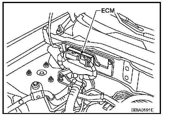 1. ECM is located in the right side of the cowl top (behind the strut tower).