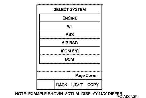 2. Select TCM INPUT SIGNALS in DATA MONITOR mode for A/T with CONSULT-II.