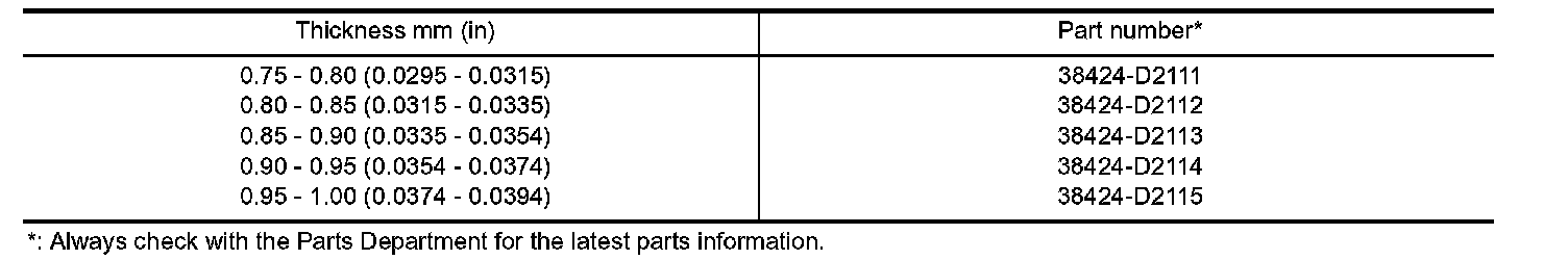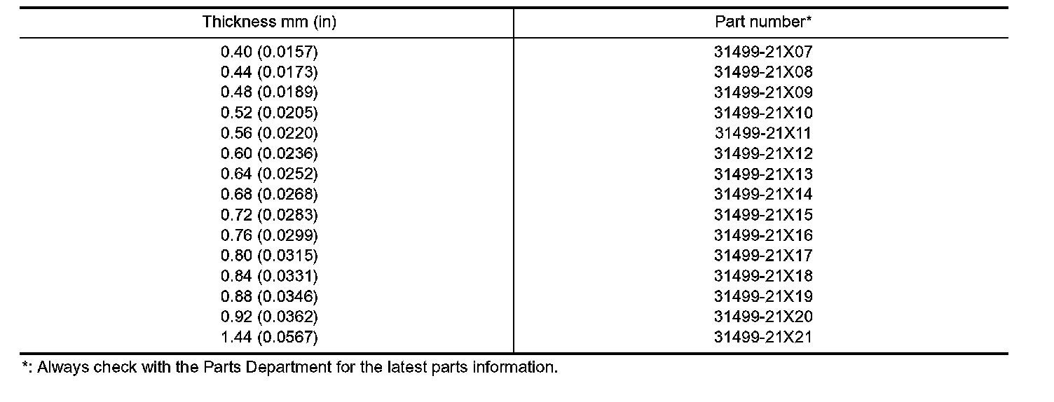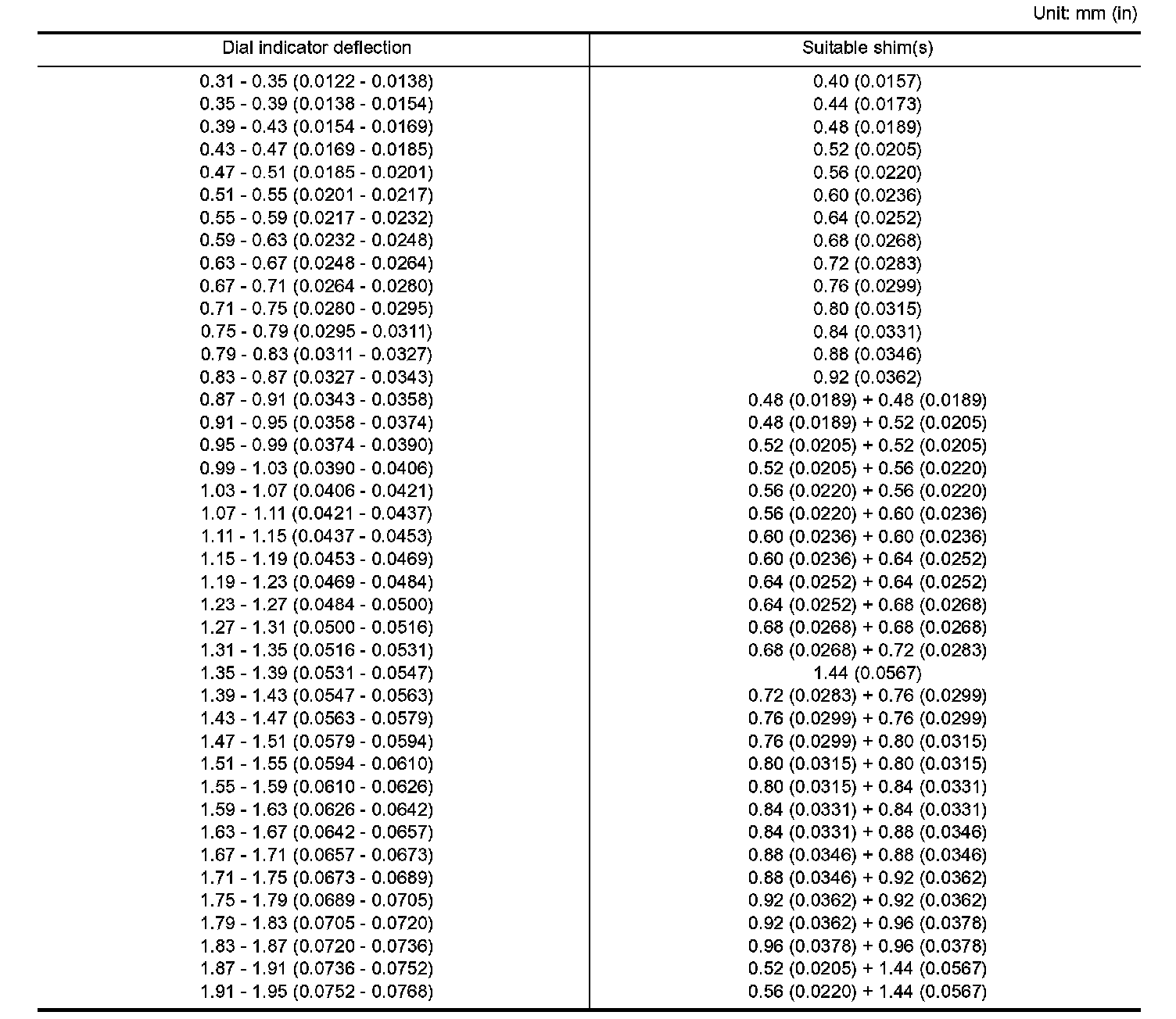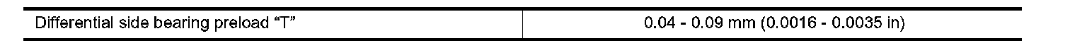 TABLE FOR SELECTING DIFFERENTIAL SIDE BEARING ADJUSTING SHIMS
