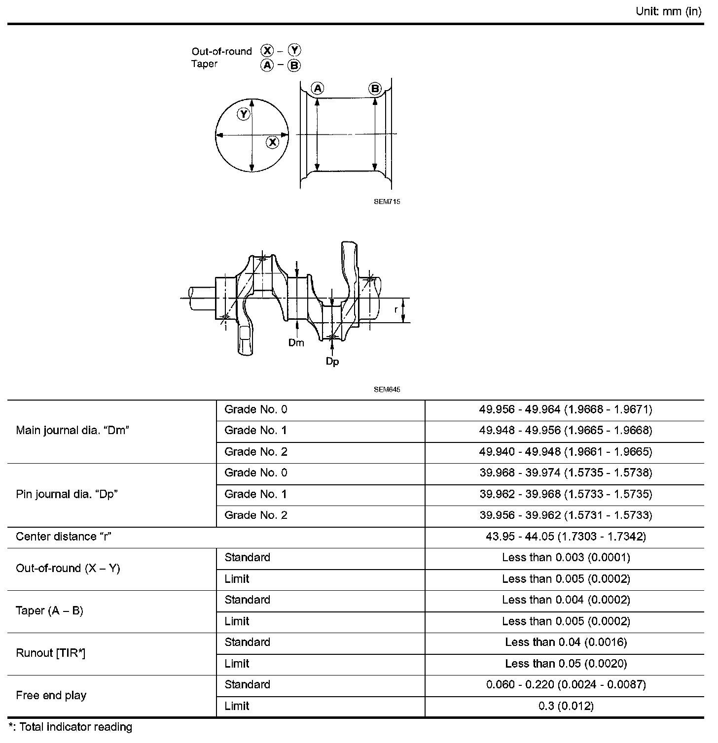 Runout, Standard (Total indicator reading): Less than 0.04 mm (0.0016 inch)