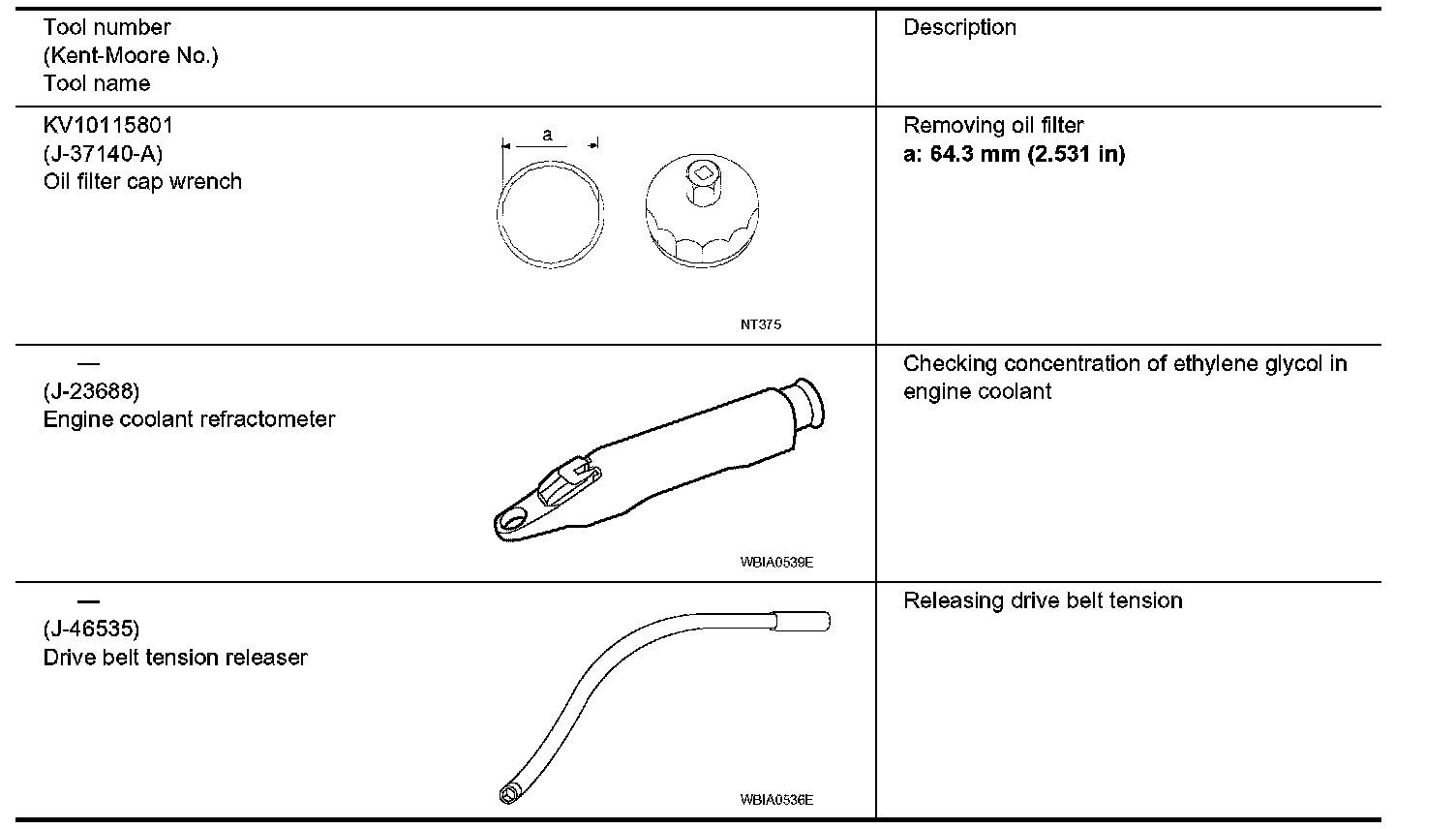 The actual shapes of Kent-Moore tools may differ from those of special service tools illustrated here.
