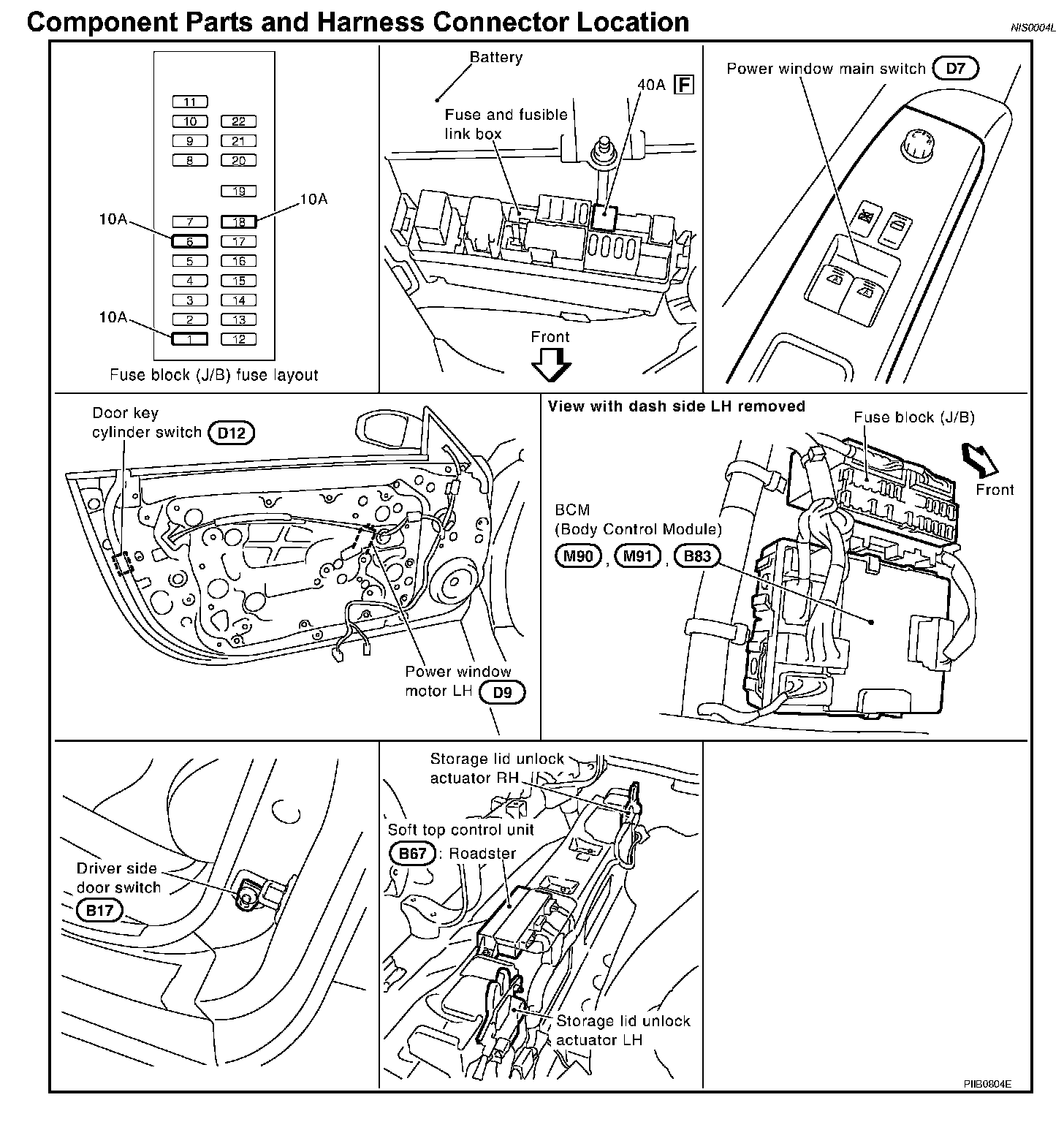 Component Parts And Harness Connector Location: