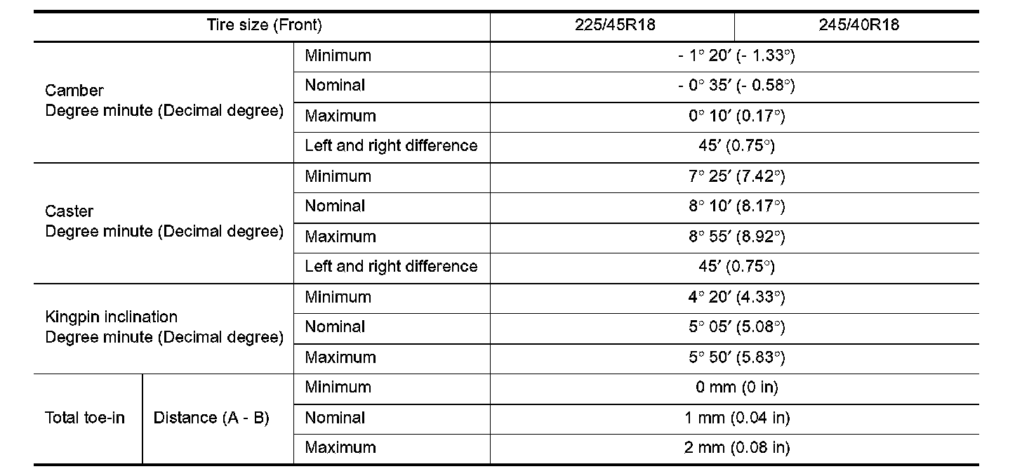 Wheel Alignment (Unladen):