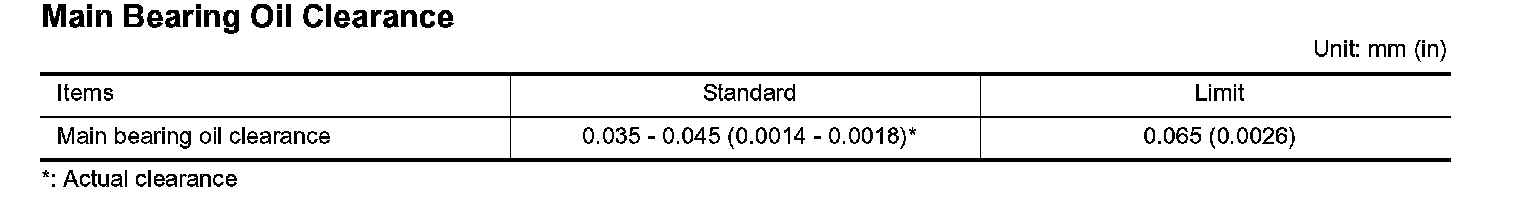 Main Bearing Oil Clearance: