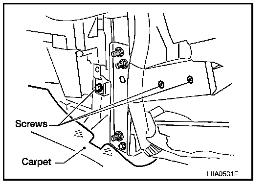 5. Pull carpet left of NAVI control unit aside and remove screws.