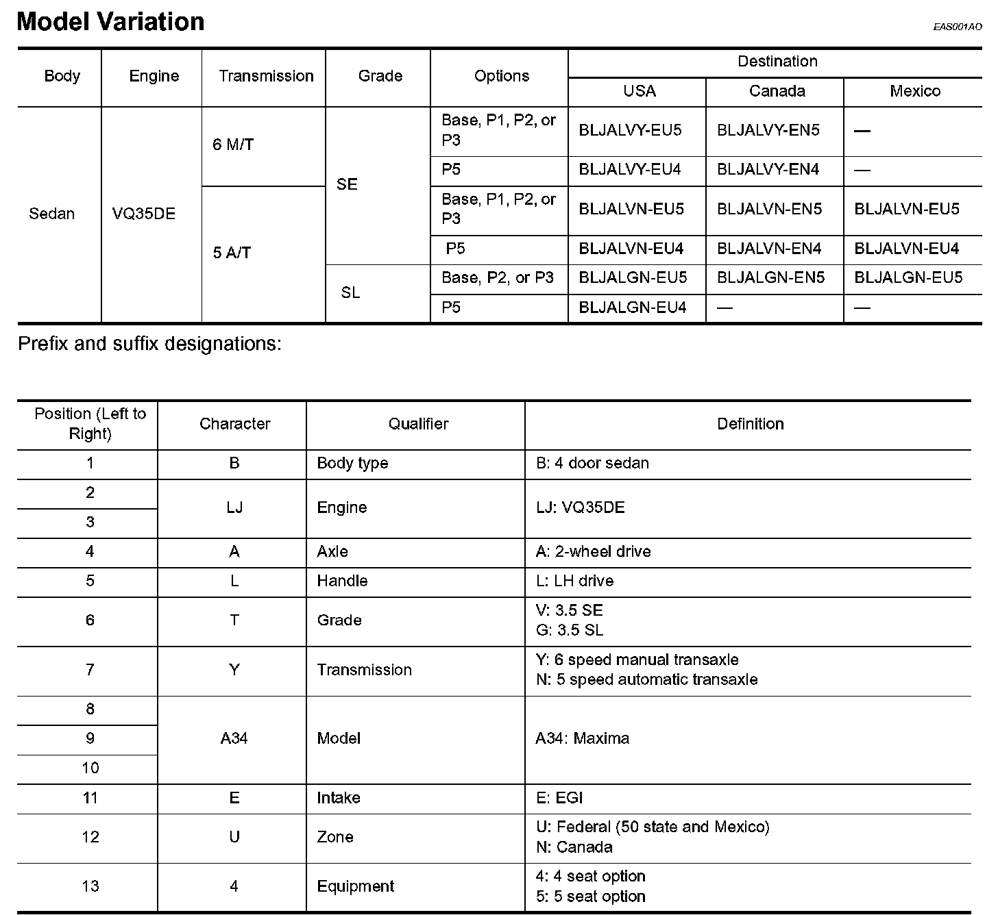 Maxima V6-3.5L (VQ35DE)