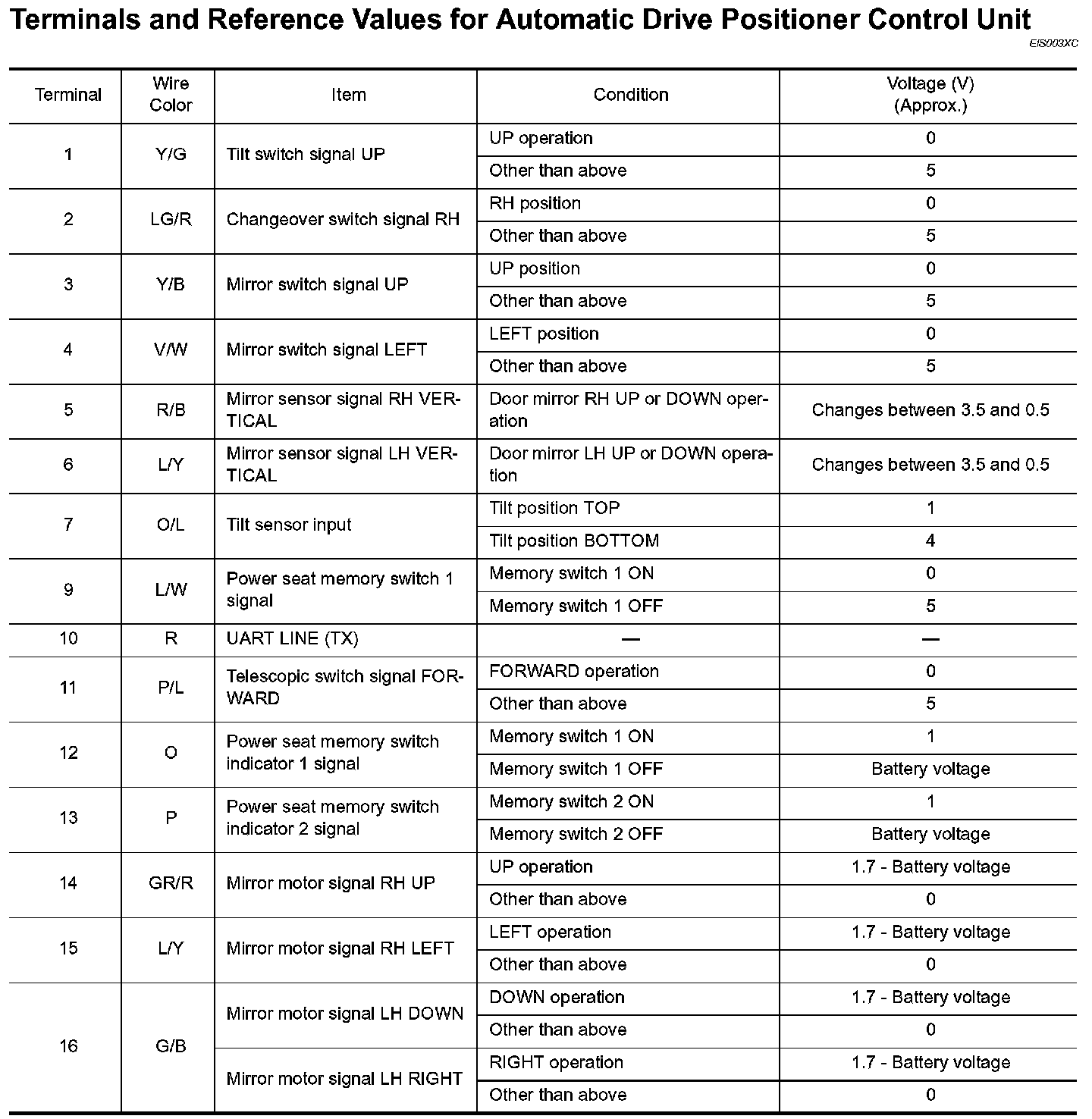 Terminals And Reference Values For Automatic Drive Positioner Control Unit Part 1: