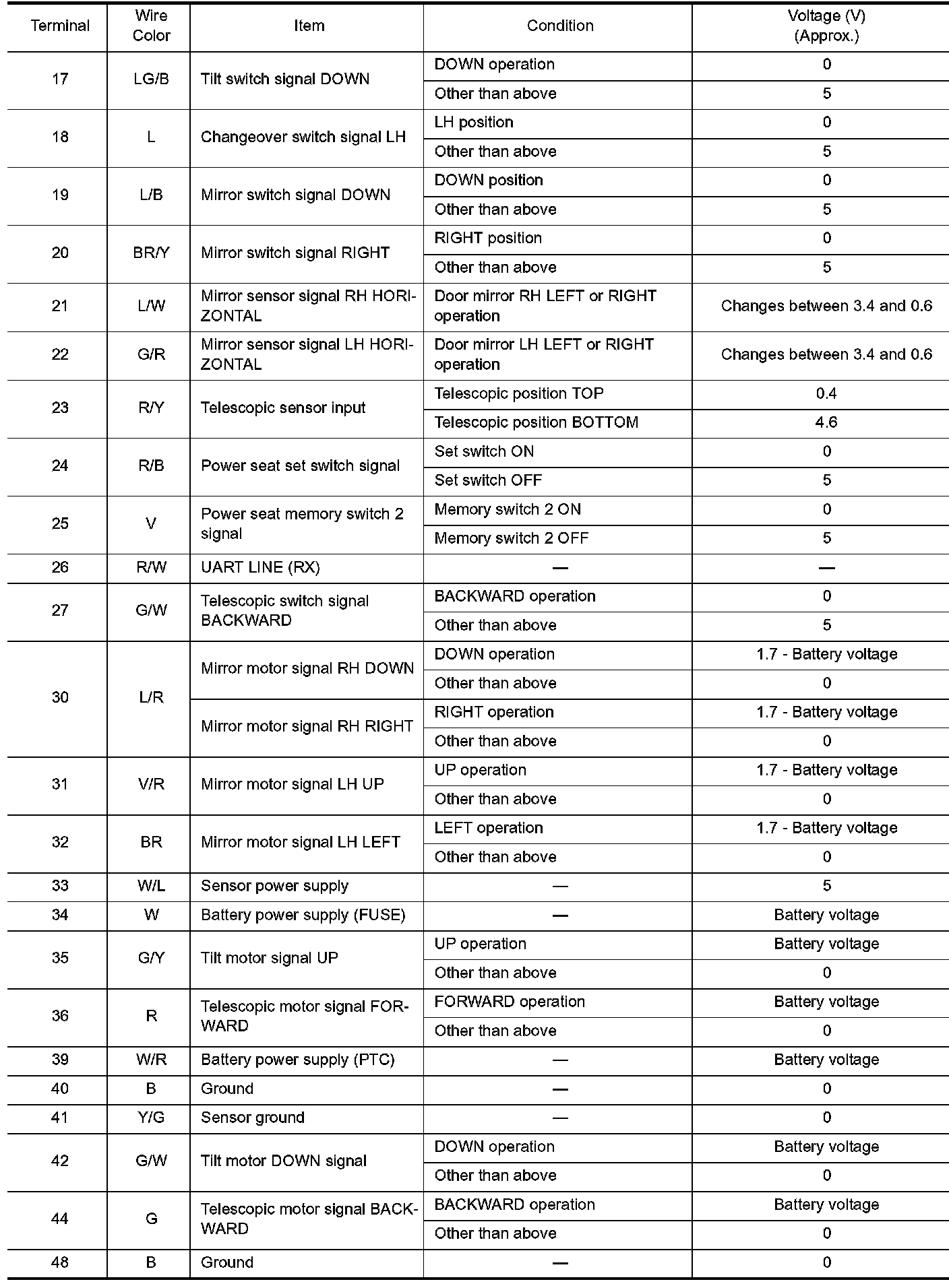 Terminals And Reference Values For Automatic Drive Positioner Control Unit Part 2: