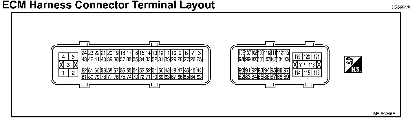 CAUTION: Do not use ECM ground terminals when measuring input/output voltage. Doing so may result in damage to the ECMs transistor. Use a ground other than ECM terminals, such as the ground.
