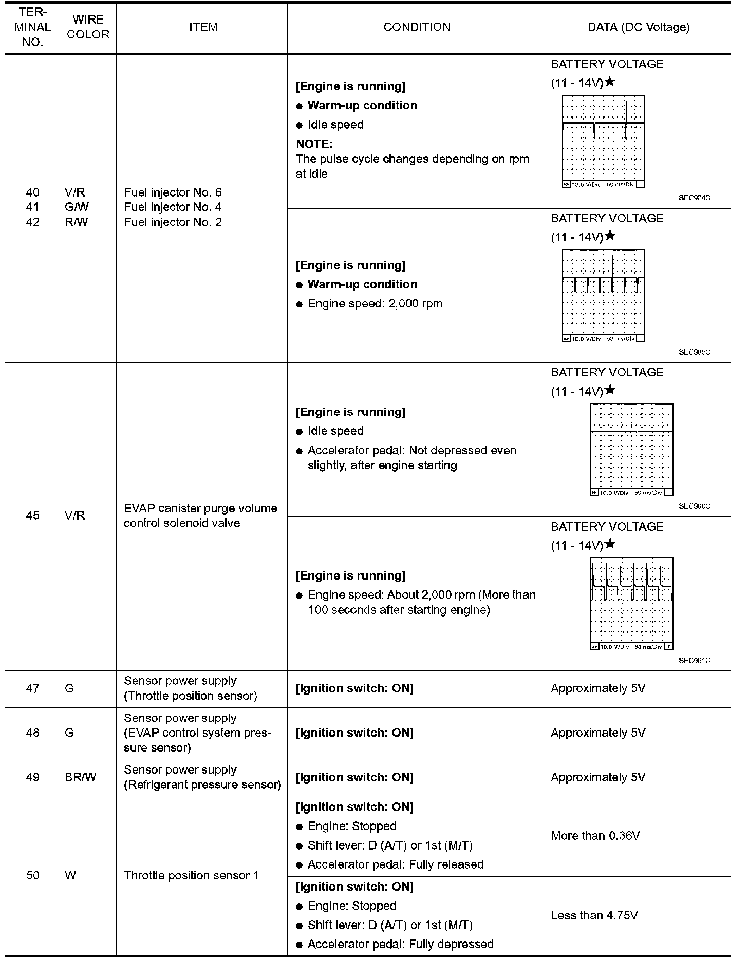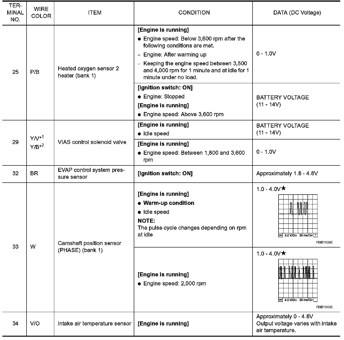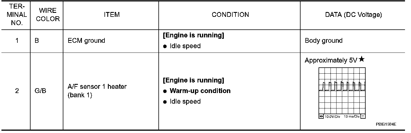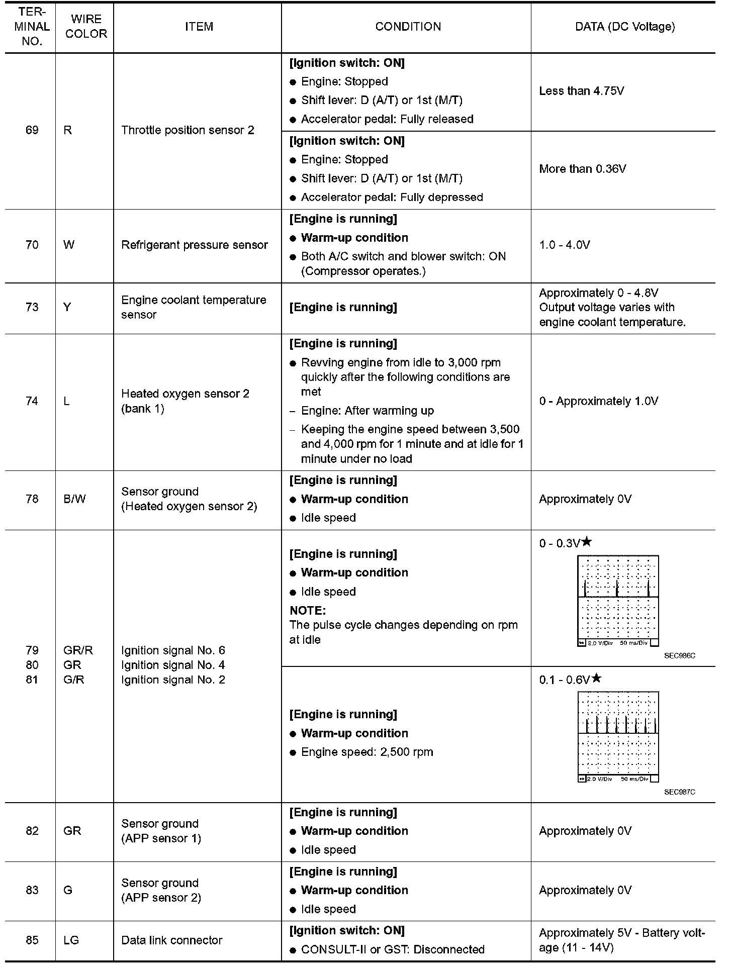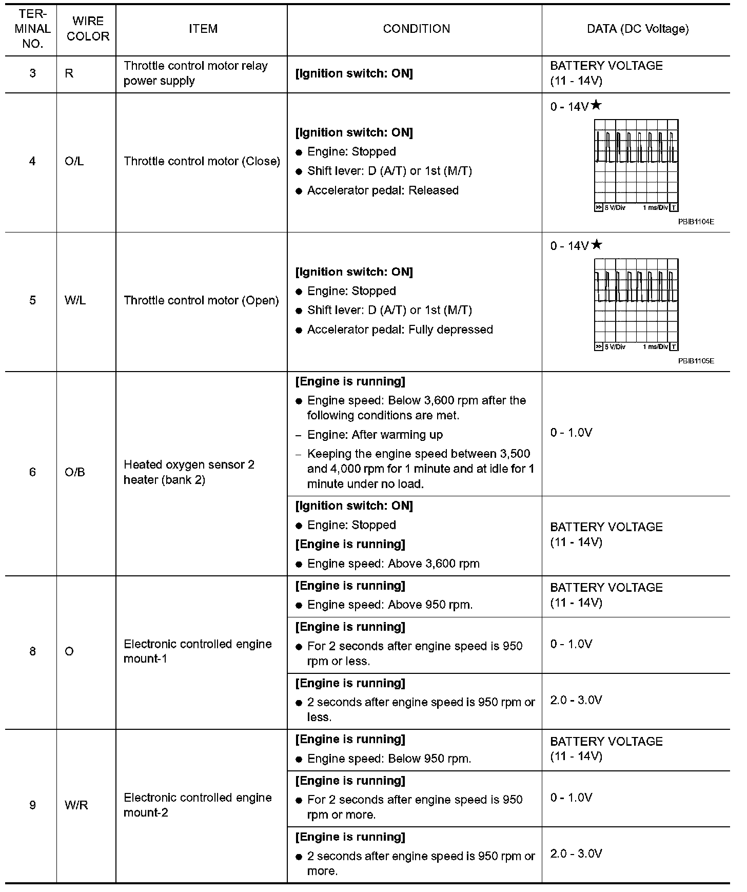 Specification data are reference values and are measured between each terminal and ground. Pulse signal is measured by CONSULT-II.