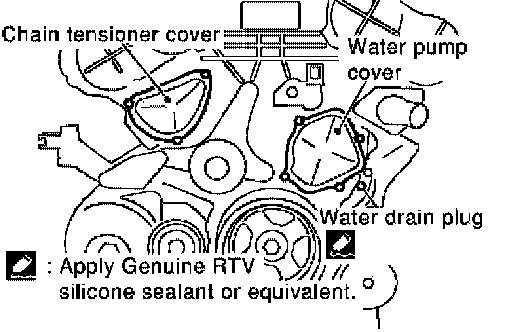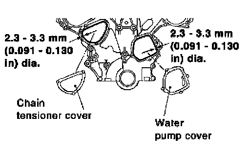 8. Apply liquid gasket and install the water pump cover and the chain tensioner cover.