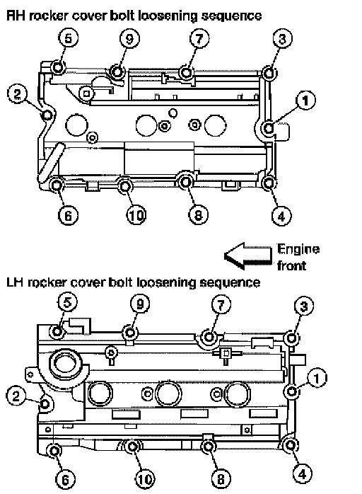 24. If necessary, remove the rocker covers. Loosen the rocker covers bolts in the order as shown.