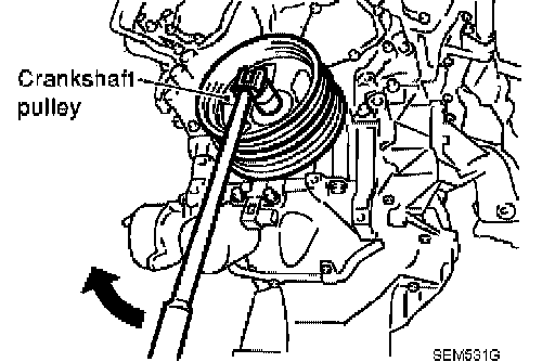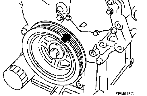 10. Rotate crankshaft pulley in normal direction (clockwise when viewed from front) to confirm it turns smoothly.