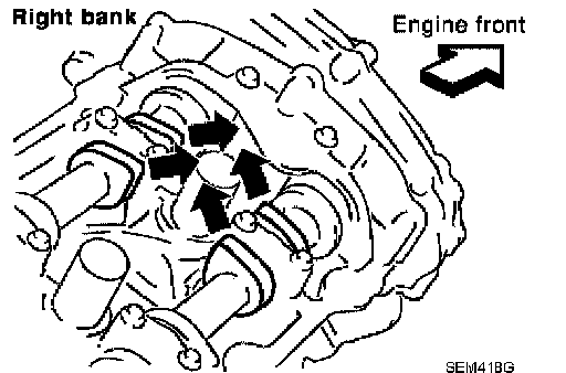 ^ When oil pan (upper) needs to be removed or installed, or when rear timing chain case is removed or installed, remove oil pans (upper and lower) first. Then remove front timing chain case, timing chain related parts, and rear timing chain case in this order, and install in reverse order of removal.