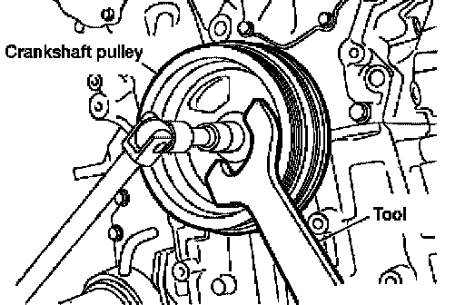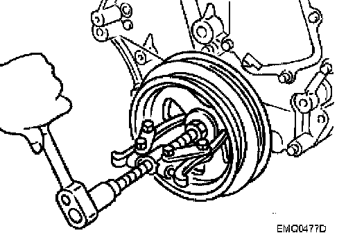 CAUTION: Do not use a puller claw on crankshaft pulley periphery.