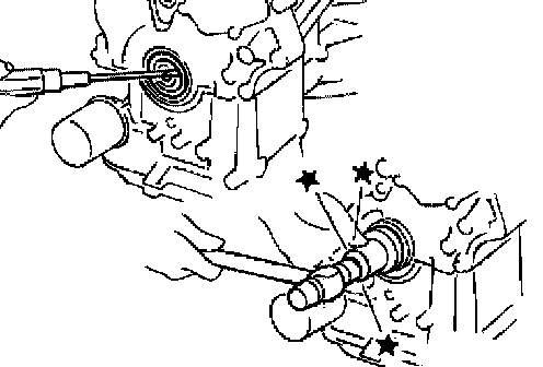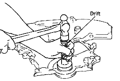 CAUTION: Press fit straight and avoid causing burrs or tilting the oil seal.