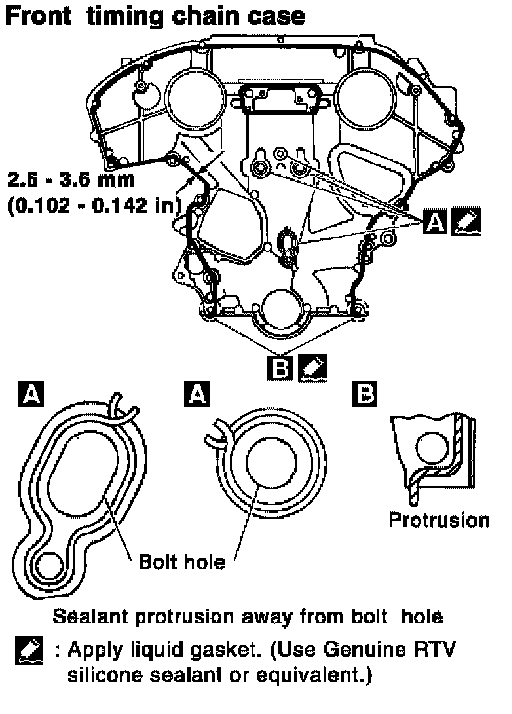 3. Apply Silicone RTV Sealant to front timing chain case as shown.