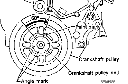 9. Install crankshaft pulley and tighten the bolt in two steps.
