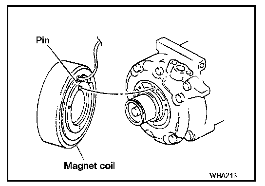 CAUTION: Be sure to align the magnet coil pin with the hole in the compressor front head.