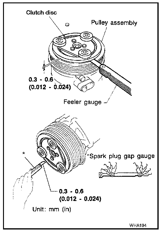 Clutch disc-to-pulley clearance : 0.3 - 0.6 mm (0.012 - 0.024 in)