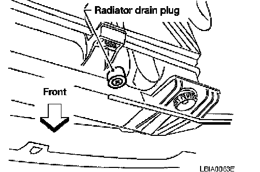 Radiator drain plug: Refer to CO-13, Removal and Installation. Service and Repair