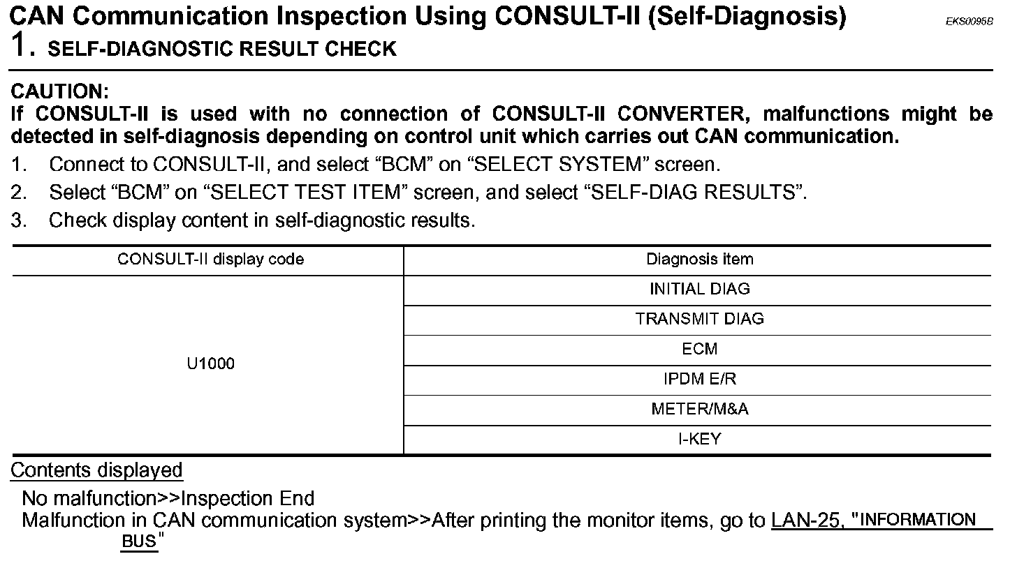CAN Communication Inspection Using CONSULT-II (Self-Diagnosis):