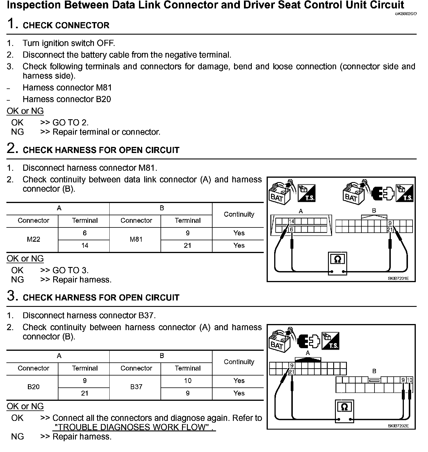 Inspection Between Data Link Connector and Driver Seat Control Unit