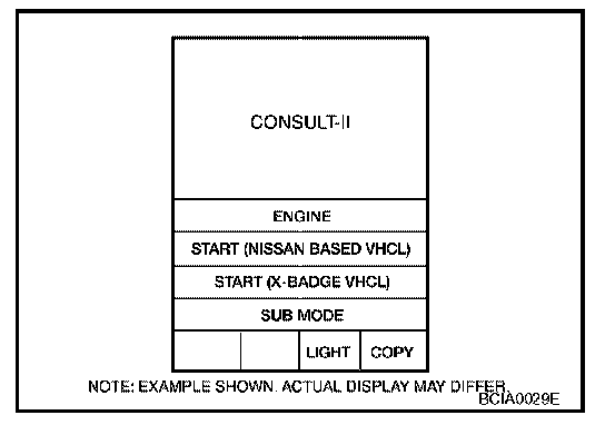 CONSULT-II OPERATIONCAUTION: If CONSULT-II is used with no connection of CONSULT-II CONVERTER, malfunctions might be detected in self-diagnosis depending on control unit which carries out CAN communication.