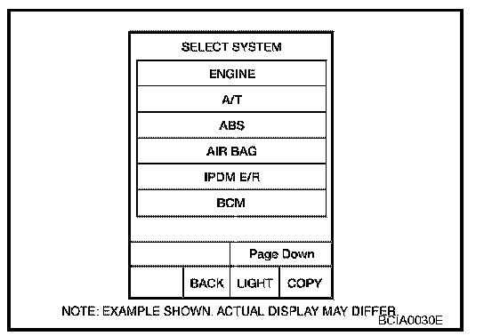 3. Touch "BCM" on "SELECT SYSTEM" screen.