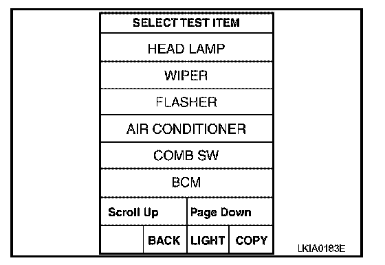 4. Select item to be diagnosed on "SELECT TEST ITEM" screen.