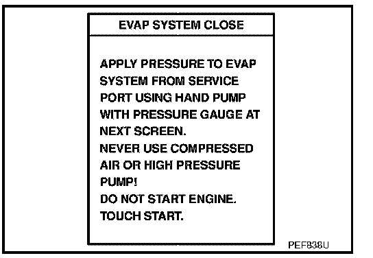 4. Select the "EVAP SYSTEM CLOSE" of "WORK SUPPORT MODE" with CONSULT-II.