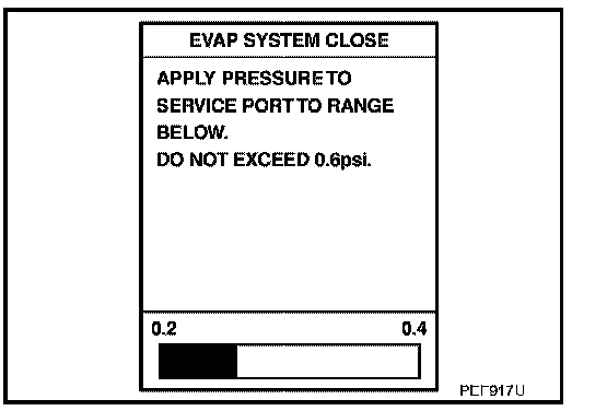 6. Apply positive pressure to the EVAP system until the pressure indicator reaches the middle of the bar graph.