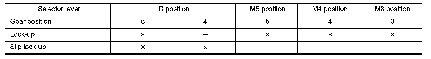 Lock-up Operation Condition Table: