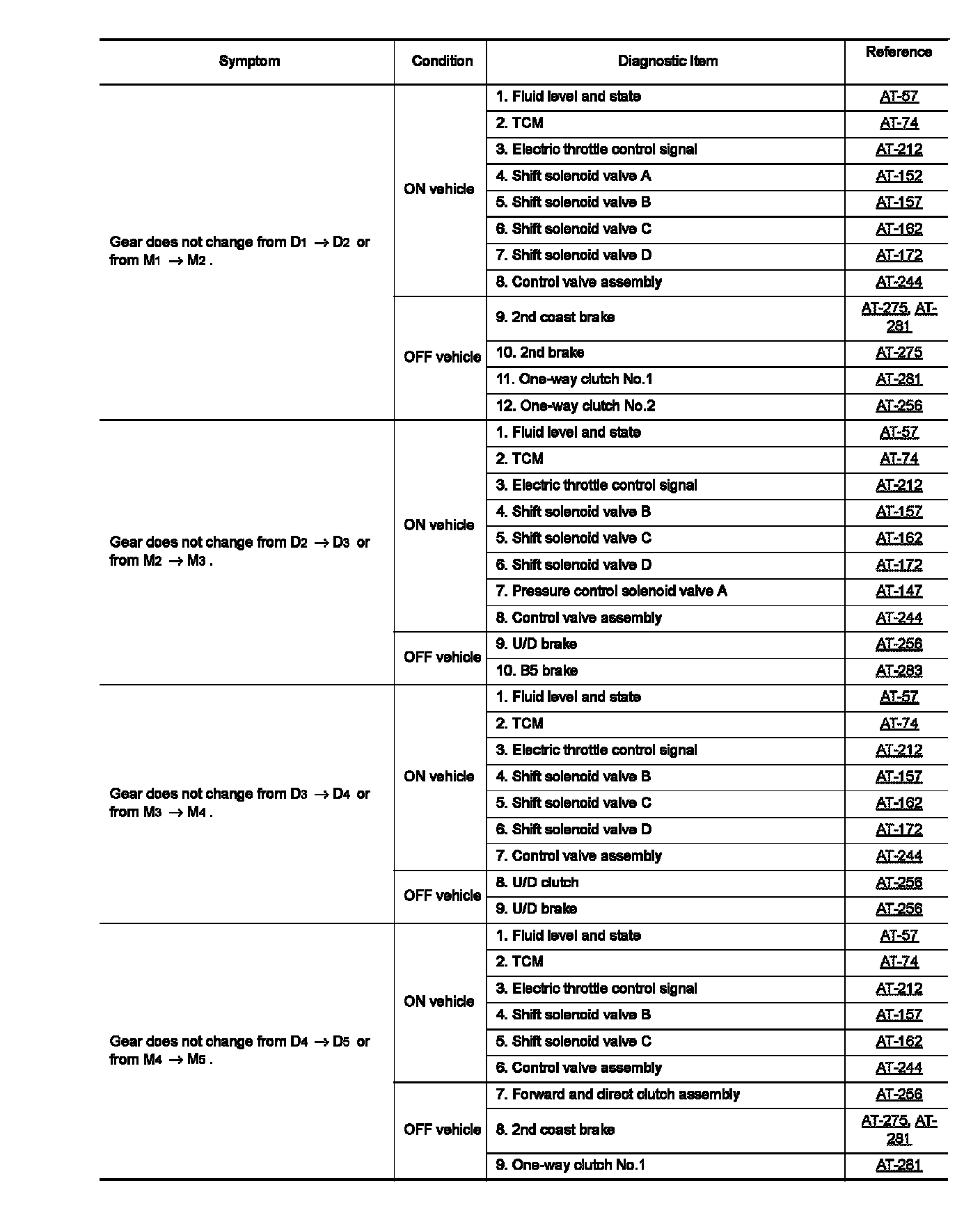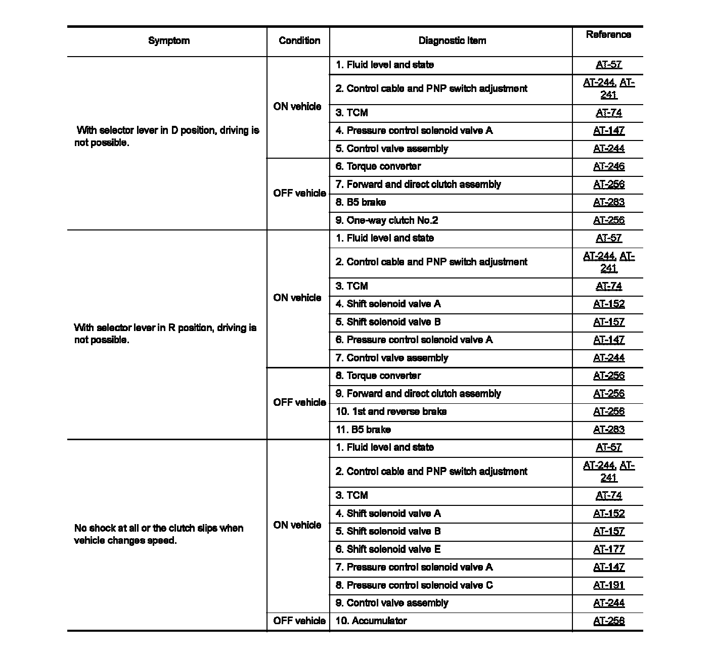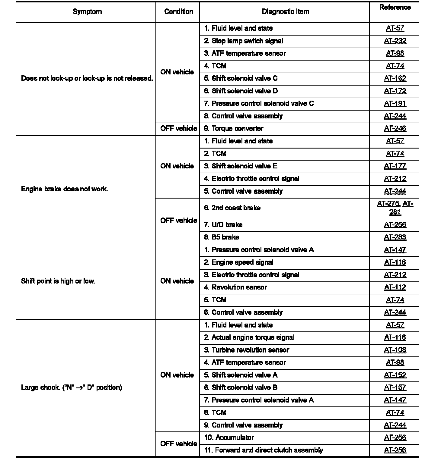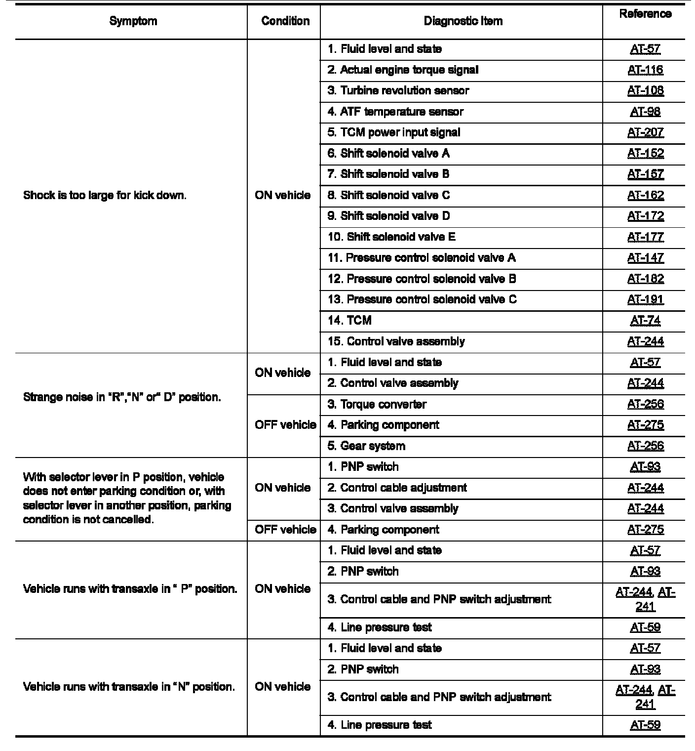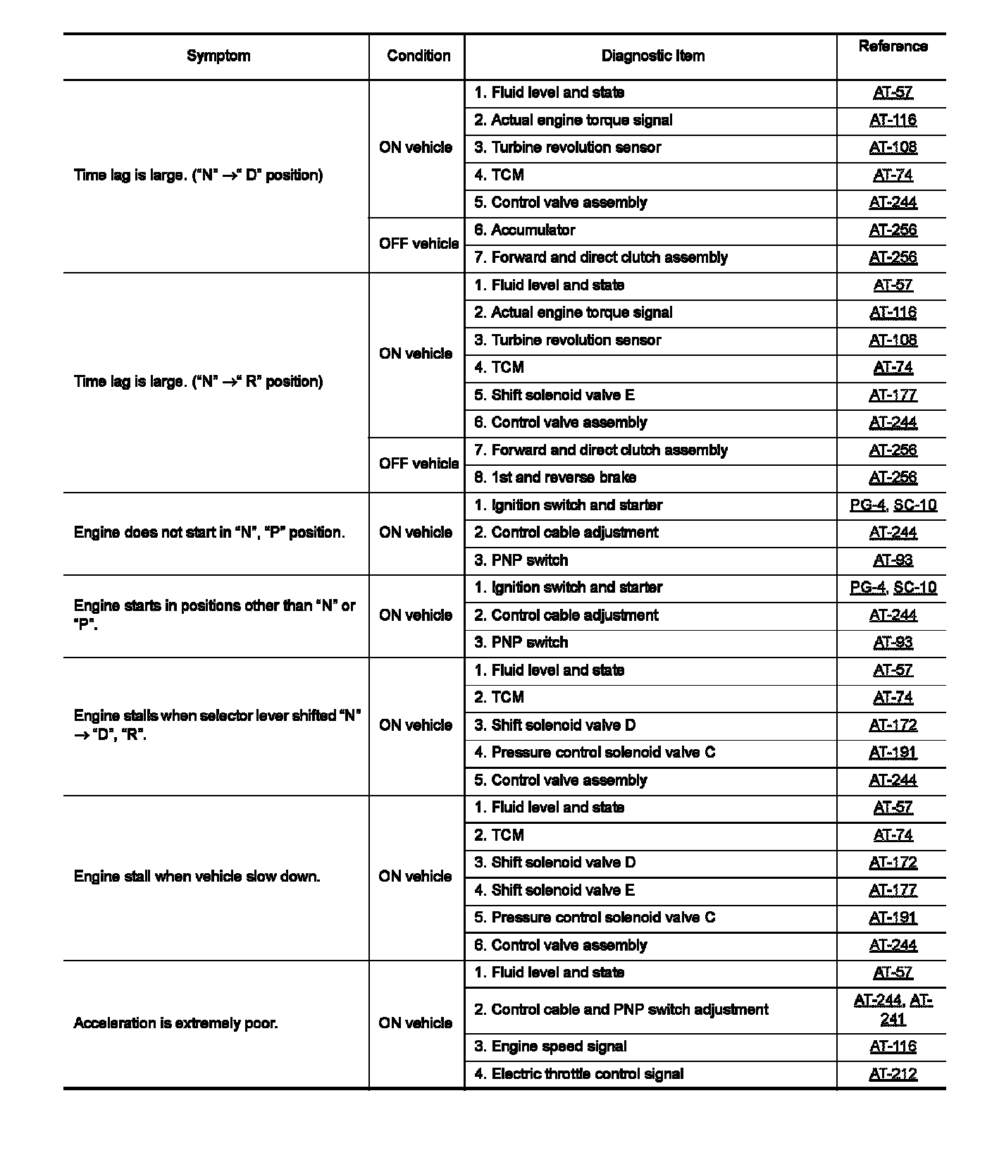 Do not remove or disassemble any RE5F22A model transaxle parts unless specified to do so.