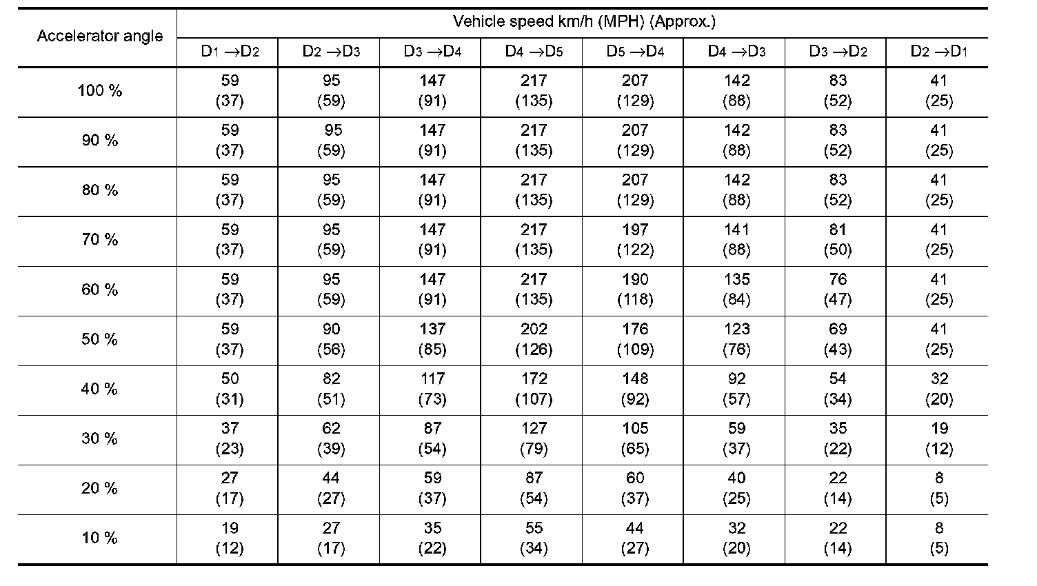 Shift ScheduleVEHICLE SPEED WHEN SHIFTING GEARS