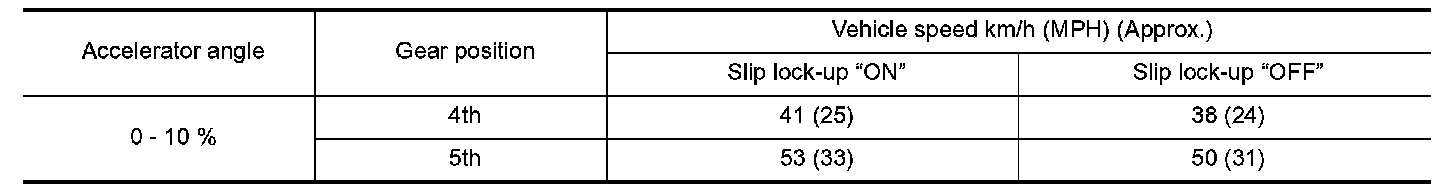 ^ Slip lock-up vehicle speed indicated the speed in D position.