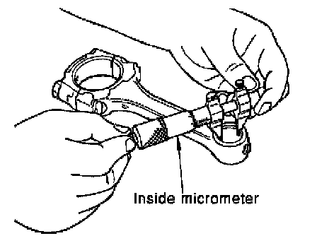 CONNECTING ROD BEARING HOUSING DIAMETER (BIG END)^ Install the connecting rod cap without the connecting rod bearing installed. After tightening the connecting rod nut to the specified torque, measure the connecting rod bearing housing big end inner diameter using an inside micrometer.