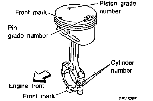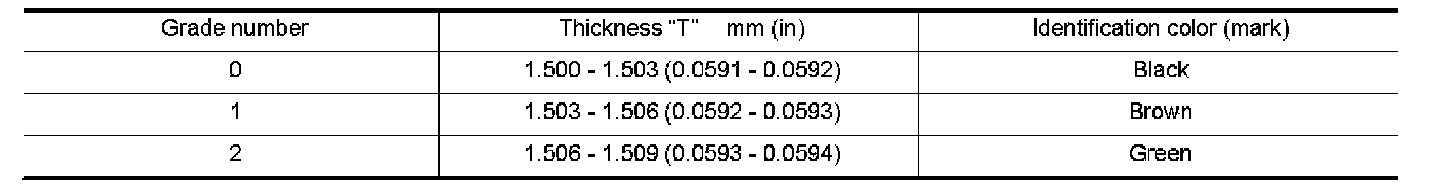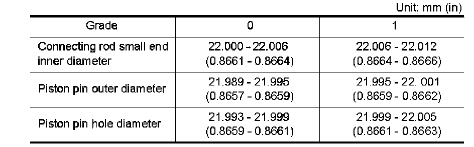 ^ If replacing the piston and piston pin assembly, refer to the Table for Selective Fitting for Piston to select the piston corresponding to the applicable bore grade of the cylinder block to be used.