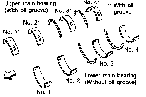 6. If the crankshaft or the cylinder block is replaced with a new one, select thickness of the main bearings as follows: