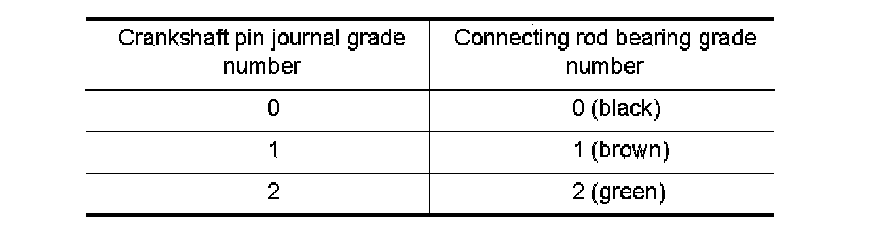 8. If the crankshaft is replaced with a new one, select the connecting rod bearings according to the following table: