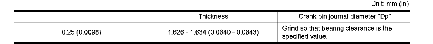 ^ If clearance cannot be adjusted using any standard bearing grade, grind crankshaft journal and use an undersized bearing.